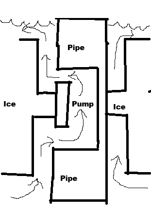 The few inches around the pipe's floatation line is usually allowed to freeze solid. Seawater can flow up the sides of the rest of the pipe. A water pump inside the pipe, about at the floatation line, pumps seawater from an inlet six inches below the floatation line to an outlet six inches above the floatation line. This arrangement hides the functional part of the pump down in the ice, away from the worst effects of midwinter Arctic temperatures. Once a few inches of new ice has been laid down on top of existing ice, the ice pack sinks a few inches into the ocean. At this point the pipe warms all of its outside and pops free of the ice, rising vertically to the current water level. Through progressive floatations, the pump might keep working until an ice floe sticking 2 meters out of the water and extending 18 meters below the surface has been c At near-freezing temperatures, seawater should flow quite a distance away in all directions from a high point 2 meters above the surface. We want to build an extremely wide ice floe with every pump. The pumps can be placed by drone into half an inch of new ice or into leads in ice floes. I'd expect a five year functional lifespan for a pipe, and pipes that break free of the ice can be tracked and picked up by drone and ship, then refurbished and redeployed. If one pipe can ice up 1 square kilometer of Arctic ice for perhaps $1000 mass-produced, and if ten million pipes are needed to refreeze the Arctic Ocean, then this project would take $10 billion dollars over each 10 year period. This plan is affordable. The scheme doesn't disturb the Arctic Ocean's naturally anaerobic under-ice ecology, nor does it interfere with ring seals or with polar bears. So, it's affordable, doing nothing is not at all affordable, and it's environmentally rather safe. 100 knot winds can tip the pipes and the ice can freeze the pipes in a tipped position. In the long run the pipes can melt themselves to a somewhat straighter position. Also, if a sailboat can be heeled over 20 degrees, then a pipe can be functional when heeled over in the ice. (1/3/26) Perhaps each pump can be moved to ten or to one hundred different locations by a drone. The drone would first drop a wind powered pilot hole digger on a new section of ice. Avoid flying drones in hurricane-force winds, but slow wind days will also happen. Once the new pilot hole has been excavated, the drone moves the pilot hole digger away, then moves a pump that has fully melted loose from its current ice to the new hole. The pump will need some type of handle for gripping, or else the drone will need a circular rubbery clamp that reaches around and below the wind turbine, and then clamps around the upper part of the pipe. Crushing total costs to $1 billion or even $100 million per year makes this project eminently feasible, compared to the costs of having the ocean flood out all of the world's coastal cities. The carrot, shown above, is an older pipe version. It shows the heating wire hanging below the pump's bottom. The pipe shape happens to be more cost-efficient than the carrot shape. In the Arctic winter, anywhere below 22 degrees F, freshwater ice crystals will form in the water. The salt brine remaining from the freezing process has now been shown in a Northern Canada study to make its way back down into the ocean through tiny holes that the salt brine cuts through the winter ice pack. Restoring the Arctic Ocean's original ice pack albedo causes spring and summer sunlight to be reflected back into space, as was always true before the climate crisis started. Right now the sun penetrates deep into the Arctic Ocean and warms methane clathrates sitting on the Arctic Ocean's continental shelves, or else blue Arctic Ocean water adds water vapor to the Arctic atmosphere in summer. Ice is a more reflective albedo than surface snow on the ice. As such, ice creates more freezing on the bottom of the floating ice. We want to prevent this bottom freezing from clogging the flow of seawater into the pump, so we have a heating wire below the pump. The Arctic is a harsh environment for refueling any device. Fortunately, 100 knot winds aren't completely uncommon in the Arctic, so local wind power is readily available all year at intermittent times. (3/14/26, PI day if you will) I see the turbine blades as rotating into the wind for survival in high winds and rotating flatter against the wind on low wind days. I see an electric generator on the turbine. I also see an air pump on the turbine. As the turbine spins air is pumped out of a tube for a rather low vacuum that can lift water a few meters above sea level. Even a full vacuum can only lift water about 10 meters above sea level, but we probably won't need that much lift. The air tube has a rocker switch such that a vacuum is created when the rocker switch is engaged, but outside air leaks into the pipe when the rocker switch is in its other position. The pump has an intake valve a fraction of one meter below sea level and an exit valve a fraction of a meter above sea level. When the rocker switch is engaged, the vacuum pulls water up through the intake valve. When disengaged, the top of the water column is now higher than the outside top of the ice pack and the water drains out of the exit valve. When the system first gets going with only centimeters of ice, we might want to only pump up one centimeter of water at a time to not damage the fragile ice with too much upward and downward pressure.. As ice builds up we can pump up a meter or so. The rocker switch enables us to have a gentle touch as needed. The pipe will need lots of temperature sensors, water flow sensors and ice thickness estimating sensors. I would expect an electrical plug near the top of the pipe. If the pipe's computer chip malfunctions or if an inquisitive polar bear breaks something, a drone can come by, plug the heating elements in, thaw the pipe out of its icy grip and carry it back to a repair shop. The 
